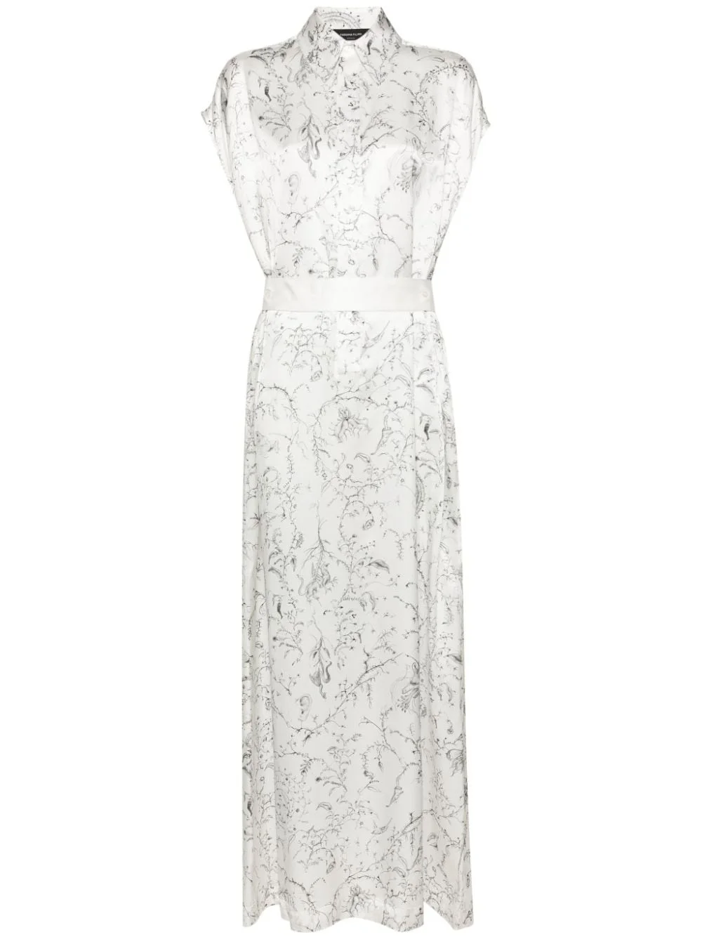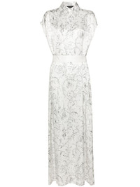 graphic-print silk shirtdress Highlights - White/black - Silk - Satin finish - All-over graphic print - Straight-point collar - Front button fastening - Drop shoulder - Sleeveless - Belted waist - Shift style - Straight hem - Long length - Unlined Made in Italy Composition Viscose 100%, Silk 100% Washing instructions Dry Clean Only