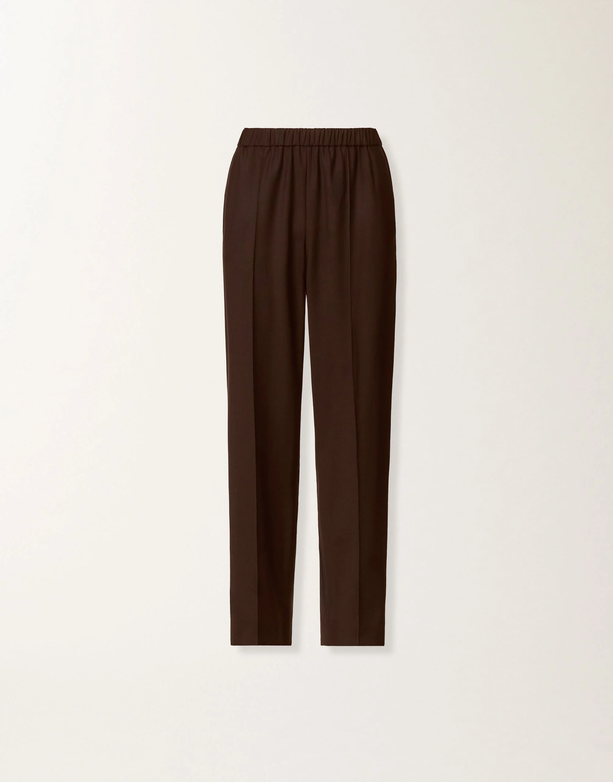 Versatility and comfort are combined in these jogging trousers, featuring fluid lines and made of bi-stretch cool wool. The stitching on the front and the diamond thread highlight the design. Produced entirely in Italy through sustainable processes. The model is 1,77m tall and is wearing size IT 40 Details Bi-stretch cool wool Diamond thread Stitching on the front Fabric: 75% wool – 23% polyamide – 2% elastane Lining: 100% polyester Made in Italy Model PAD215F322L52300001269