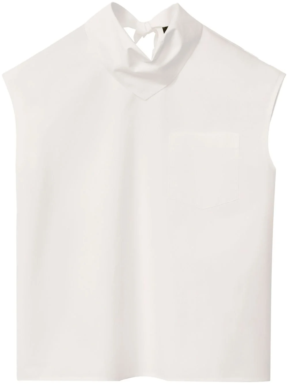 halterneck blouse Highlights - White - Halterneck tie fastening - Chest patch pocket - Sleeveless - Straight hem Made in Italy Composition Fabric 100% Washing instructions Read Manufacturer Guidelines