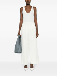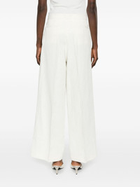 high-waist wide-leg trousers Highlights - Light beige - Linen blend - Slub texture - Pressed crease - High-waisted - Concealed front button, hook and zip fastening - Two side inset pockets - Two rear welt faux-pockets - Wide leg Made in Italy Composition Outer: Linen/Flax 60%, Viscose 26%, Polyester 14% Lining: Viscose 100% Washing instructions Dry Clean Only