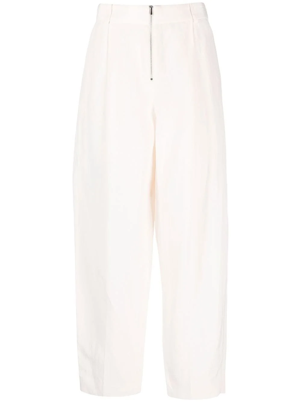 high-waisted linen-silk blend trousers Highlights - Off-white - Linen-silk blend - Pleat detailing - High waist - Front zip fastening - Belt loops - Two side slit pockets - Two rear patch pockets - Straight leg Made in Italy Composition Outer: Linen/Flax 52%, Silk 48% Lining: Polyester 82%, Spandex/Elastane 18% Washing instructions Dry Clean Only