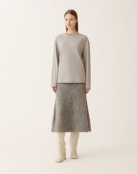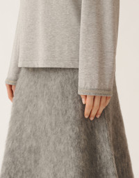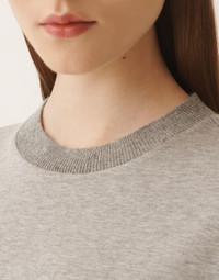 This boxy jersey top enhances simplicity with sophisticated details such as diamond-thread cuffs and a knit collar. A versatile, elegant garment ideal for enriching every occasion. Entirely made in Italy with a sustainable approach. The model is 1.76 meters tall and wears size IT 40. Details Jersey Diamond thread Fabric: 100% cotton Knit collar: 75% wool – 15% silk – 10% cashmere Made in Italy Model JED225F861L69600008149