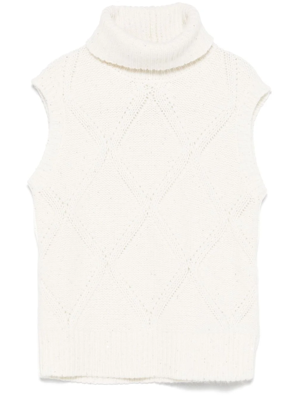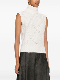 knitted tank top Highlights - Cream white - Merino wool blend - Purl knit - Ribbed trim - Sequin embellishment - Roll neck - Sleeveless - Ribbed hem Made in Italy Composition Merino 60%, Silk 18%, Cashmere 14%, Alpaca 6%, Polyester 2% Washing instructions Hand Wash