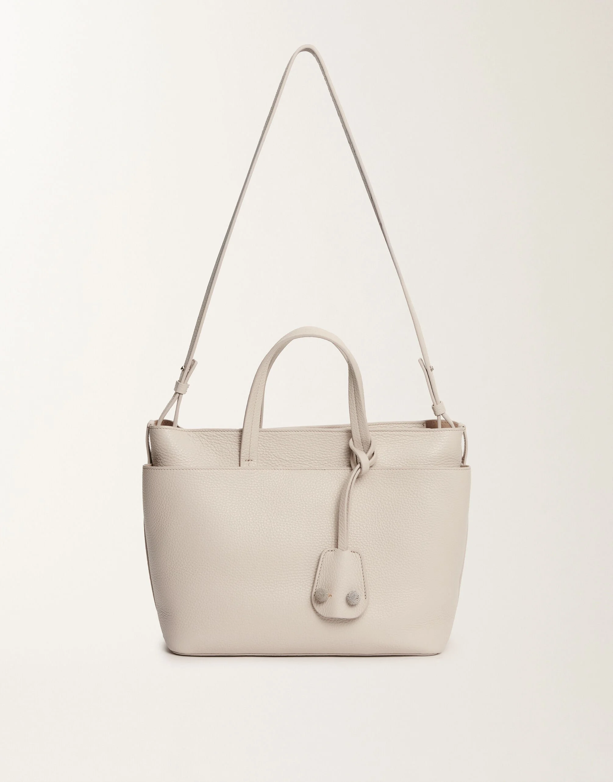 A contemporary design defines this spacious handbag, made of fine grain leather and embellished with a piercing detail with a shiny diamond thread. The production, which is entirely Italian, takes place in compliance with sustainable processes. The model is 1,76m tall and is wearing size IT 40 Details Diamond wire thread 100% grained leather Dimensions: 36x24x14 cm Made in Italy Model BGD215A850L80400008197