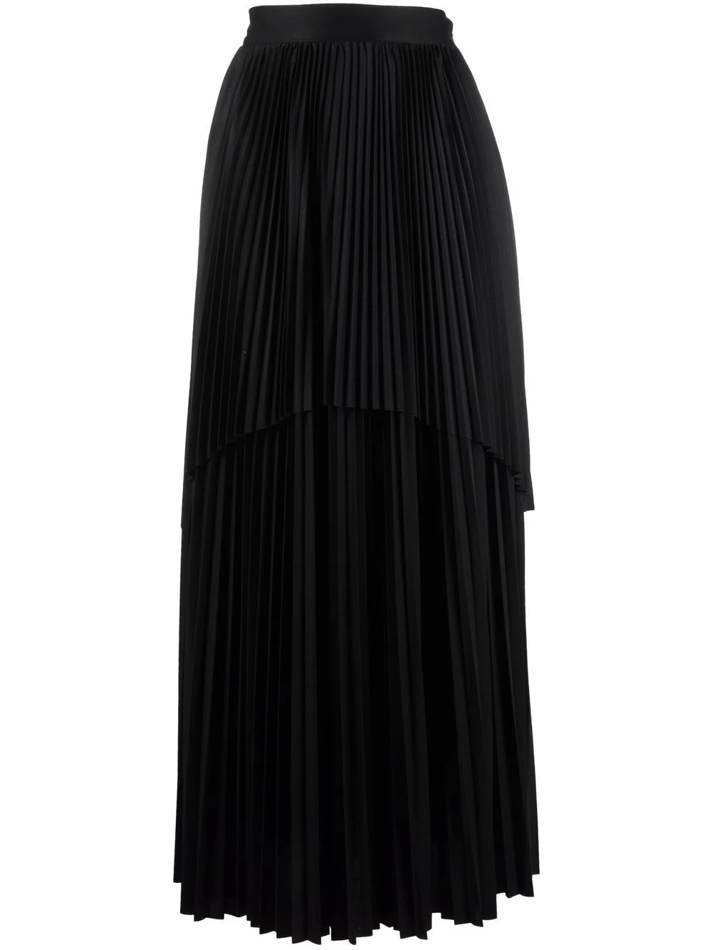 layered pleated maxi skirt black fully pleated layered design high waist flared Made in Italy Composition Polyester 100% Washing instructions Hand Wash