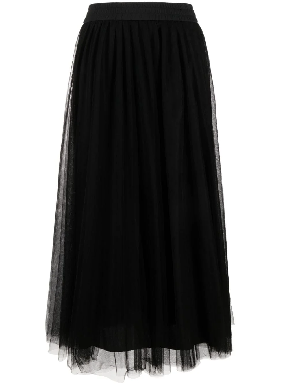 layered tulle skirt Fabiana Filippi's skirt speaks to the brand's romantic sensibilities. It's cut from swathes of ethereal black tulle to a voluminous A-line silhouette and topped with an elasticated waistband. Highlights - Black - Tulle netting - Elasticated waistband - Calf-length - A-line - Straight hem Made In Italy Composition Outer: Polyamide 100%, Acetate 57%, Silk 43% Lining: Polyester 82%, Elastane 18% Washing instructions Dry Clean Only