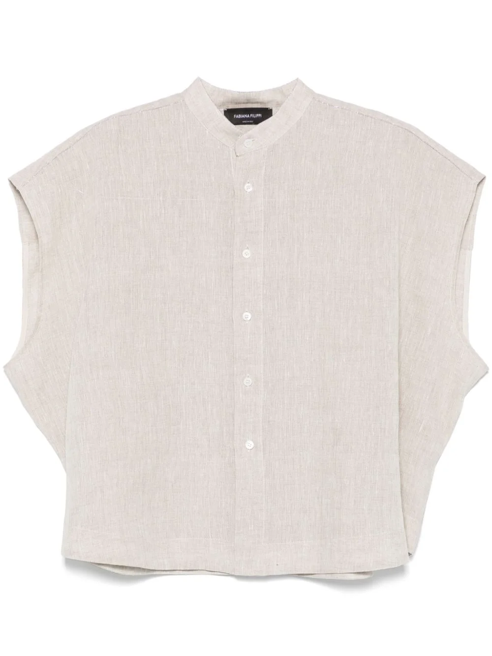linen shirt Highlights - Taupe - Front button fastening - Band collar - Sleeveless Made in Italy Composition Linen/Flax 100% Washing instructions Machine Wash