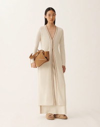 Long cardigan in organic cotton knit, defined by a contrasting trim enriched with diamond thread. An essential piece that combines purity and contemporary design, crafted in Italy through sustainable processes. Details Organic cotton Contrast trim Filo Diamante Fabric: 100% cotton Made in Italy Model MAD276F545M1810000VR1