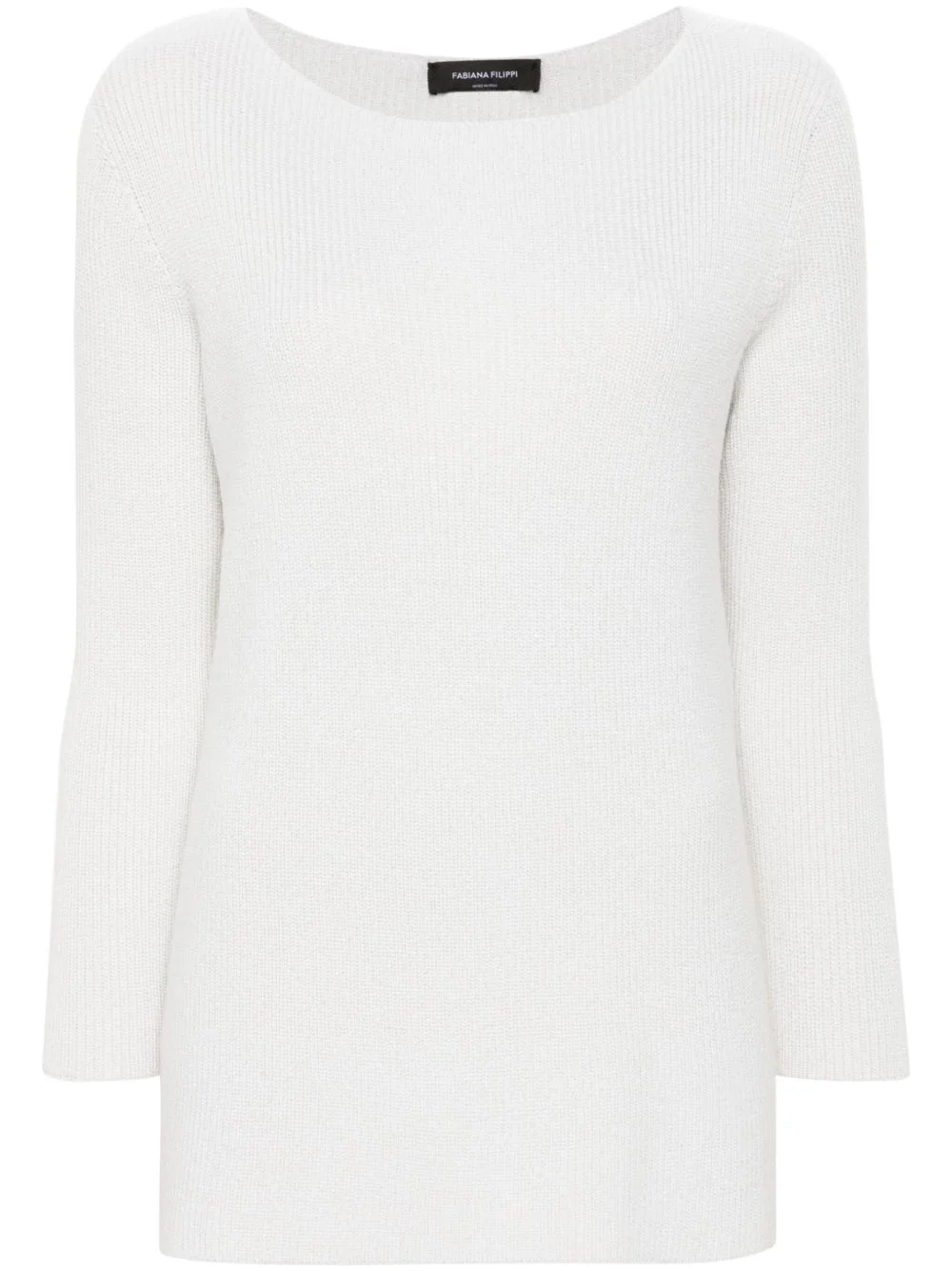 lurex-detail sweater Highlights - White/silver-tone - Virgin wool blend - Metallic threading - Fisherman's knit - Lurex detailing - Round neck - Long sleeves - Side slits - Straight hem - Unlined Made in Italy Composition Virgin Wool 86%, Viscose 11%, Polyester 3% Washing instructions Hand Wash