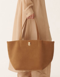 The medium Eclissi tote bag captures the multifunctional silhouette of Fabiana Filippi accessories, offering a versatile and essential form. Crafted from soft suede, it features the brand's exclusive Eclissi closure. Made entirely in Italy using sustainable processes. The model is 1,76 m tall and wears size IT 40. Details Eclissi 100% suede Made in Italy Model BGD266A809M00000001268