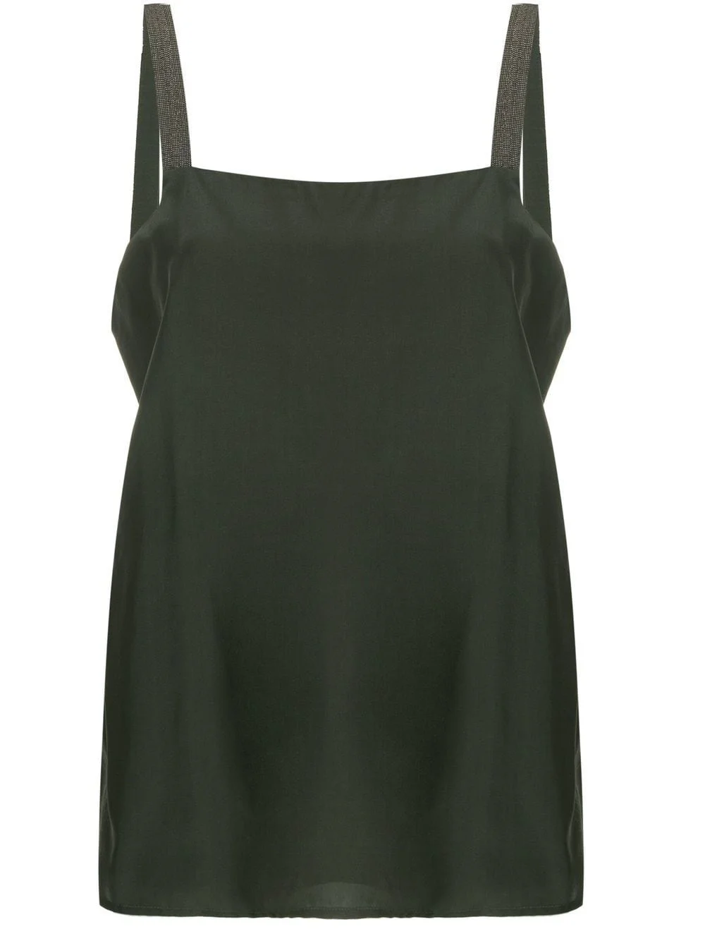 metallic strap top Fabiana Filippi showcases the brand's signature sense of sartorial elegance in this sleeveless top. The bead embellished straps add to the brand's use of purposeful, minimalist detailing. Made in Italy Composition Lining: Polyester 82%, Spandex/Elastane 18% Outer: Viscose 68%, Silk 32% Washing instructions Dry Clean Only
