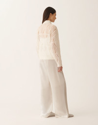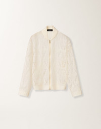 Mohair "spiderweb" bomber with foliage stitch. Contemporary volumes and distinctive design define this unique piece, enhanced with coating and lined with tulle. Made entirely in Italy through sustainable processes. The model is 1,78 m tall and wears size IT 40. Details Mohair with coating Spider web stitch Fabric: 37% mohair – 37% alpaca – 26% polyamide Length: 60 cm (size 40) Made in Italy Model MAD266F123L776000025