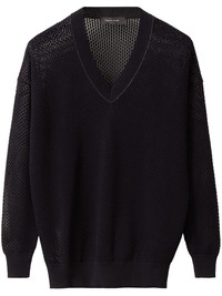 open-knit sweater Highlights - Midnight blue - Ribbed cuffs and hem - Bead detailing - V-neck Made in Italy Composition Fabric 100% Washing instructions Read Manufacturer Guidelines