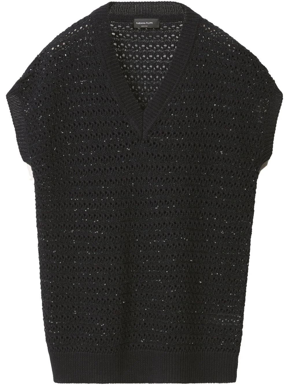 open-knit T-shirt Highlights - Black - Sequin embellishment - V-neck - Cap sleeves Made in Italy Composition Fabric 100% Washing instructions Read Manufacturer Guidelines