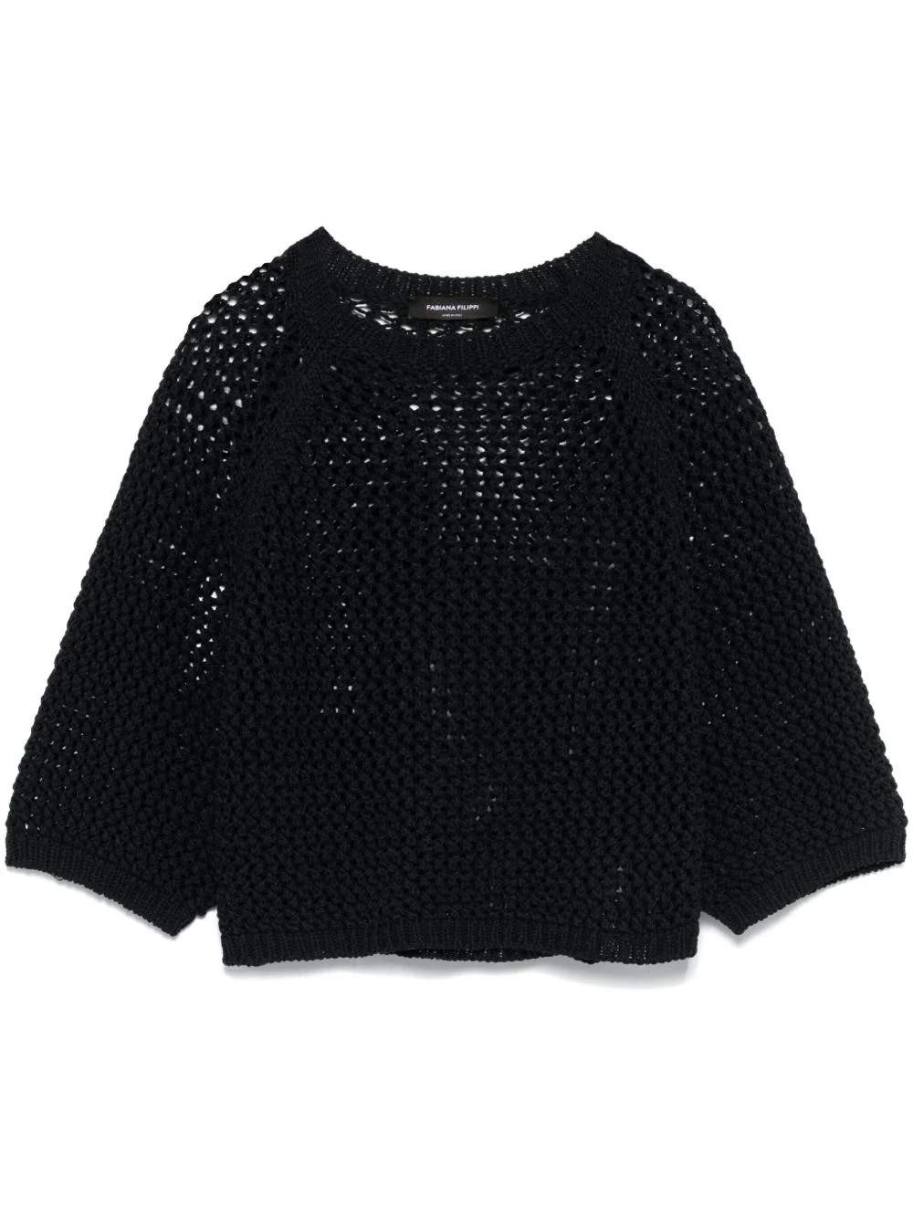 open-knit T-shirt Highlights - Black - Crew neck - Three-quarter length sleeves - Ribbed trim Made in Italy Composition Cotton 100% Washing instructions Hand Wash