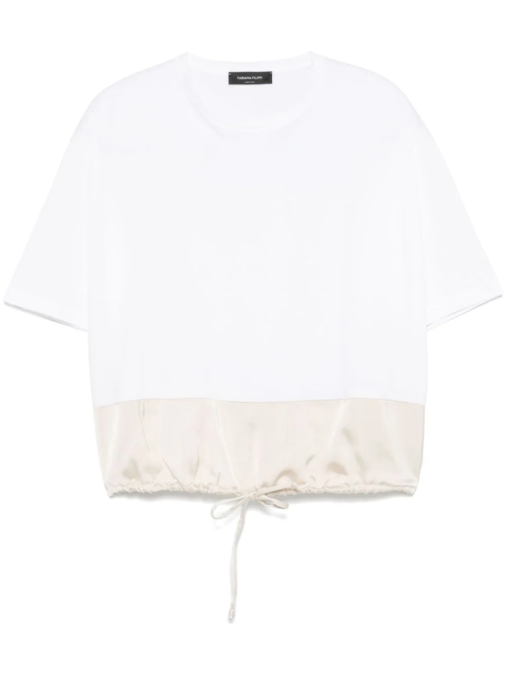 panelled top Highlights - White - Elasticated drawstring waistband - Crew neck - Short sleeves Made in Italy Composition Viscose 100%, Cotton 100% Washing instructions Dry Clean Only