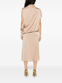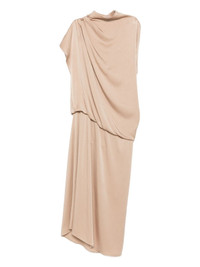draped high-neck midi dress Highlights - Beige - High neck - Draped design - Asymmetric sleeves - Gathered waist Made in Italy Composition Outer: Viscose 54%, Acetate 46% Lining: Acetate 88%, Silk 12% Washing instructions Dry Clean Only