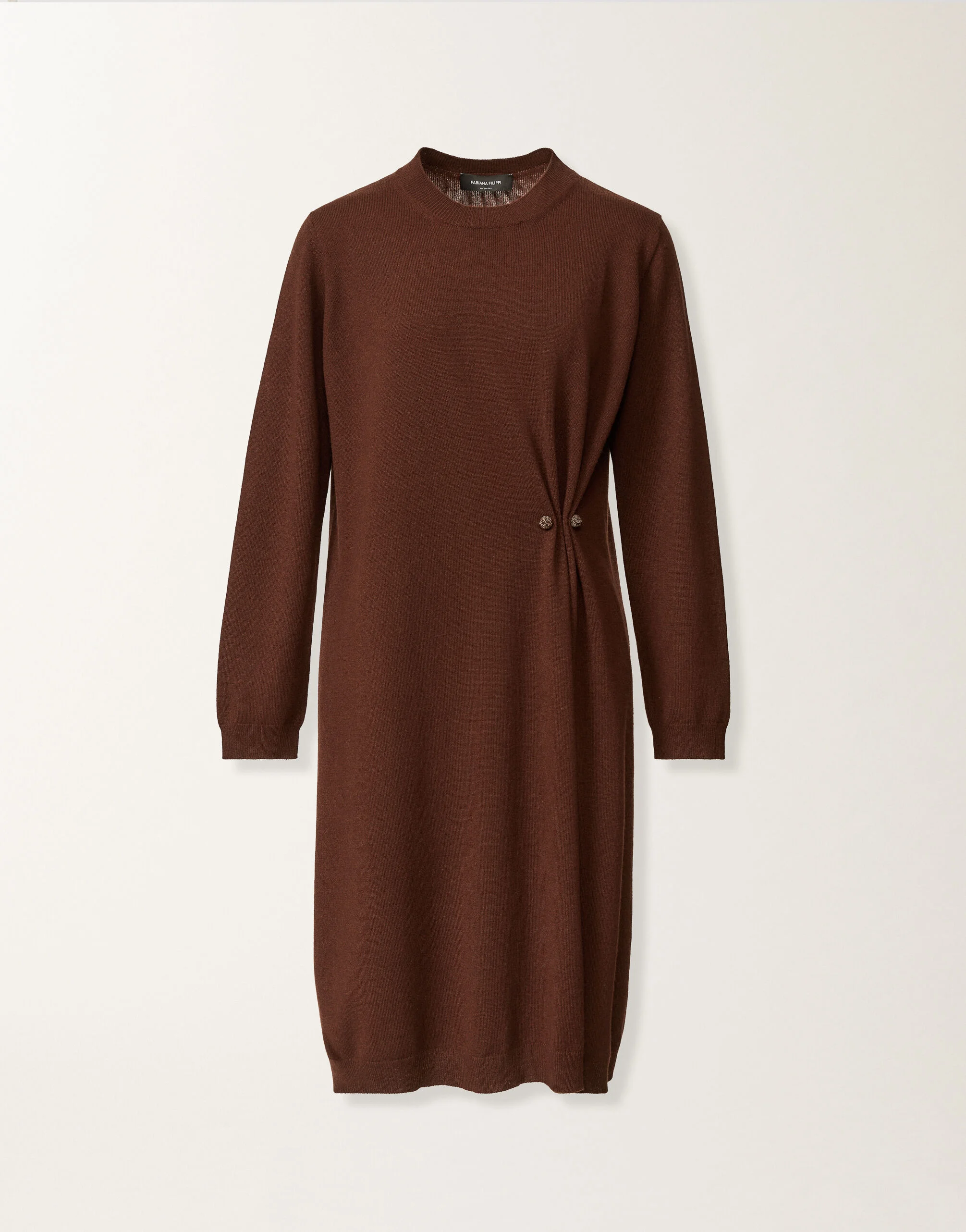Made of Platinum, the exclusive Fabiana Filippi yarn that combines wool, cashmere and silk, this flared dress features a high collar embellished with a diamond thread embroidery. Produced entirely in Italy through sustainable processes. The model is 1,76m tall and is wearing size IT 40 Details Platinum yarn Diamond thread Fabric: 75% wool - 15% silk - 10% cashmere Length: 110 cm (size 40) Made in Italy Model ABD215F141L51700001269
