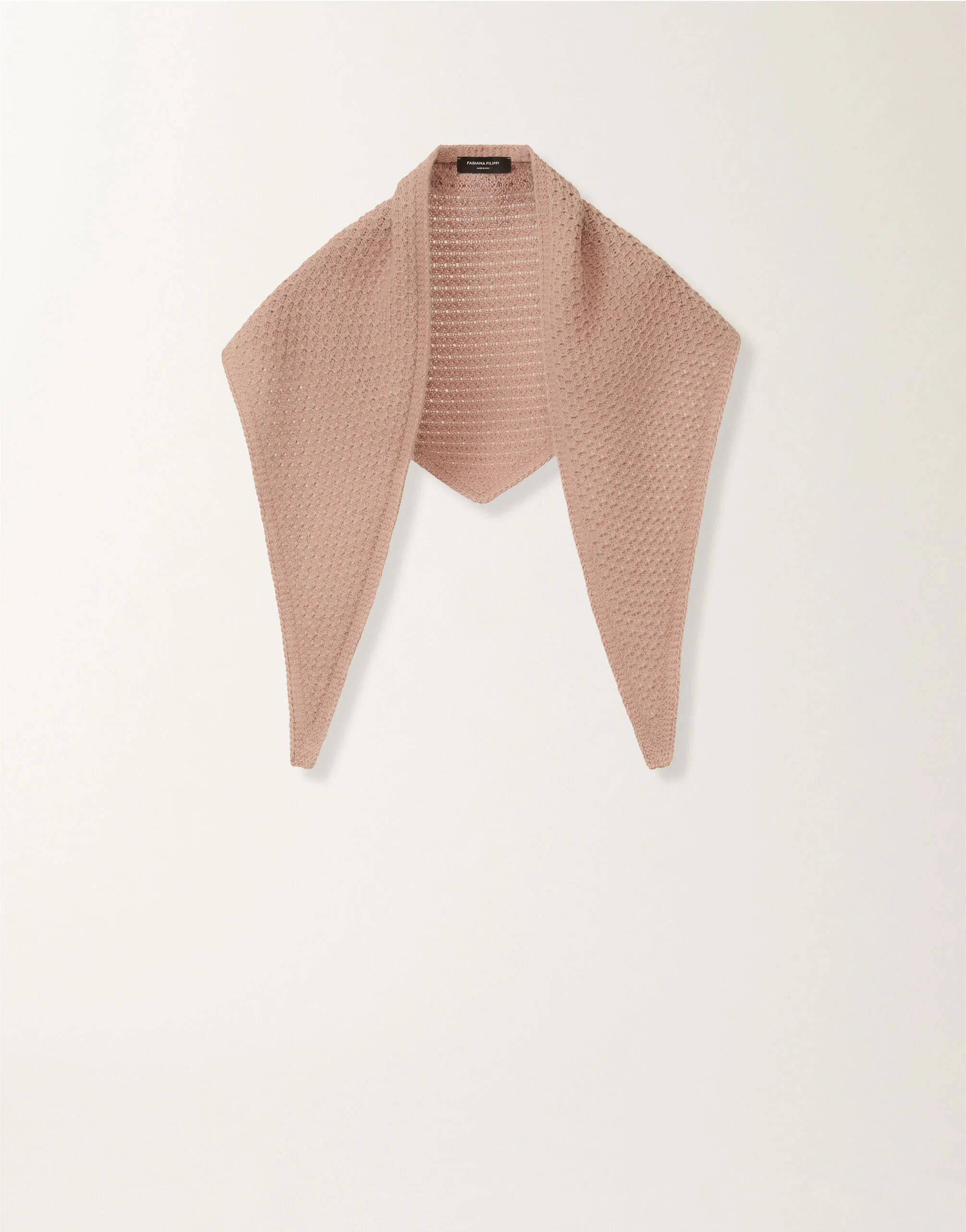 The combination of Platinum and mohair yarn gives this scarf a soft and warm texture. The three-dimensional chain stitch, which is exclusive to the collection, enhances its refinement. Produced entirely in Italy through sustainable processes. The model is 1,78m tall and is wearing size IT 40 Details Platinum mohair yarn Fabric: 49% wool – 23% mohair – 12% nylon – 10% silk – 6% cashmere Made in Italy Model SAD215A919L55100002197