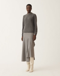 Made of Platinum, the exclusive Fabiana Filippi yarn that combines wool, cashmere and silk, this sweater features a high collar embellished with a diamond thread embroidery. Produced entirely in Italy through sustainable processes. The model is 1,78m tall and is wearing size IT 40 Details Platinum yarn Diamond thread Fabric: 75% wool - 15% silk - 10% cashmere Length: 61 cm (size 40) Made in Italy Model MAD215F092L51700008185
