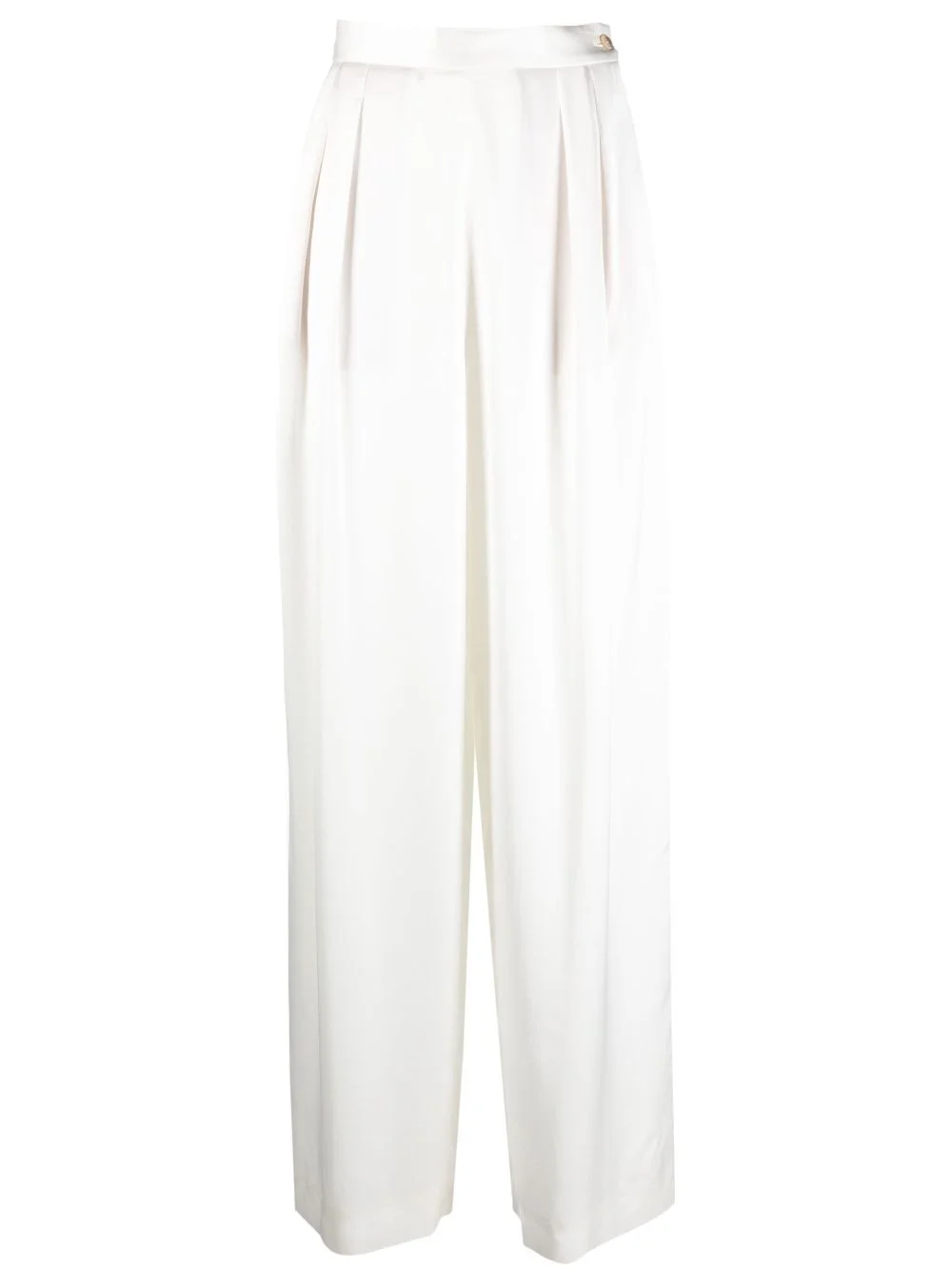 pleat-detail palazzo trousers Highlights - White - Satin weave - Palazzo design - Pleat detailing - Side button and zip fastening - Wide leg - Two side inset pockets - Floor-length Made in Italy Composition Outer: Viscose 87%, Wool 13% Lining: Polyester 100% Washing instructions Dry Clean Only