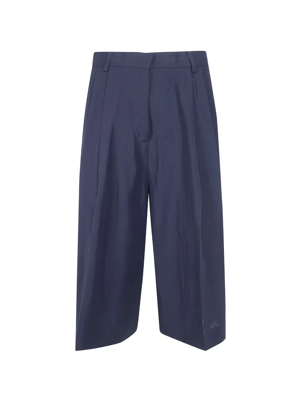 pleated trousers Highlights - Night blue - Front pleats - Side pockets - Back welt pocket - Wide leg - Cropped Imported Composition Viscose 100% Washing instructions Read Manufacturer Guidelines