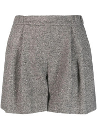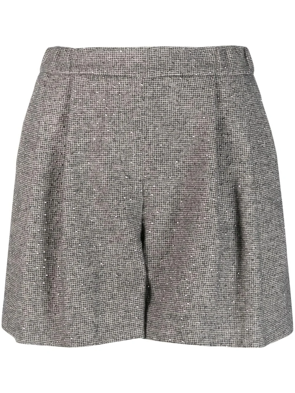 pleated wool-blend shorts Highlights - Grey - Wool blend - Sequin embellishment - High-waisted - Pleat detailing - Rear elasticated waistband - Two side inset pockets - Two rear jetted pockets - Thigh-length Made in Italy Composition Outer: Wool 76%, Polyamide 22%, other fibers 2% Lining: Viscose 57%, Polyester 43% Washing instructions Dry Clean Only
