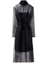 printed silk midi dress Highlights - Black - Silk - Sheer - Rear button fastening - All-over graphic print - High neck - Long sleeves - Belted waist - Straight hem - Internal slip dress - Mid-length Made in Italy Composition Silk 100% Washing instructions Dry Clean Only
