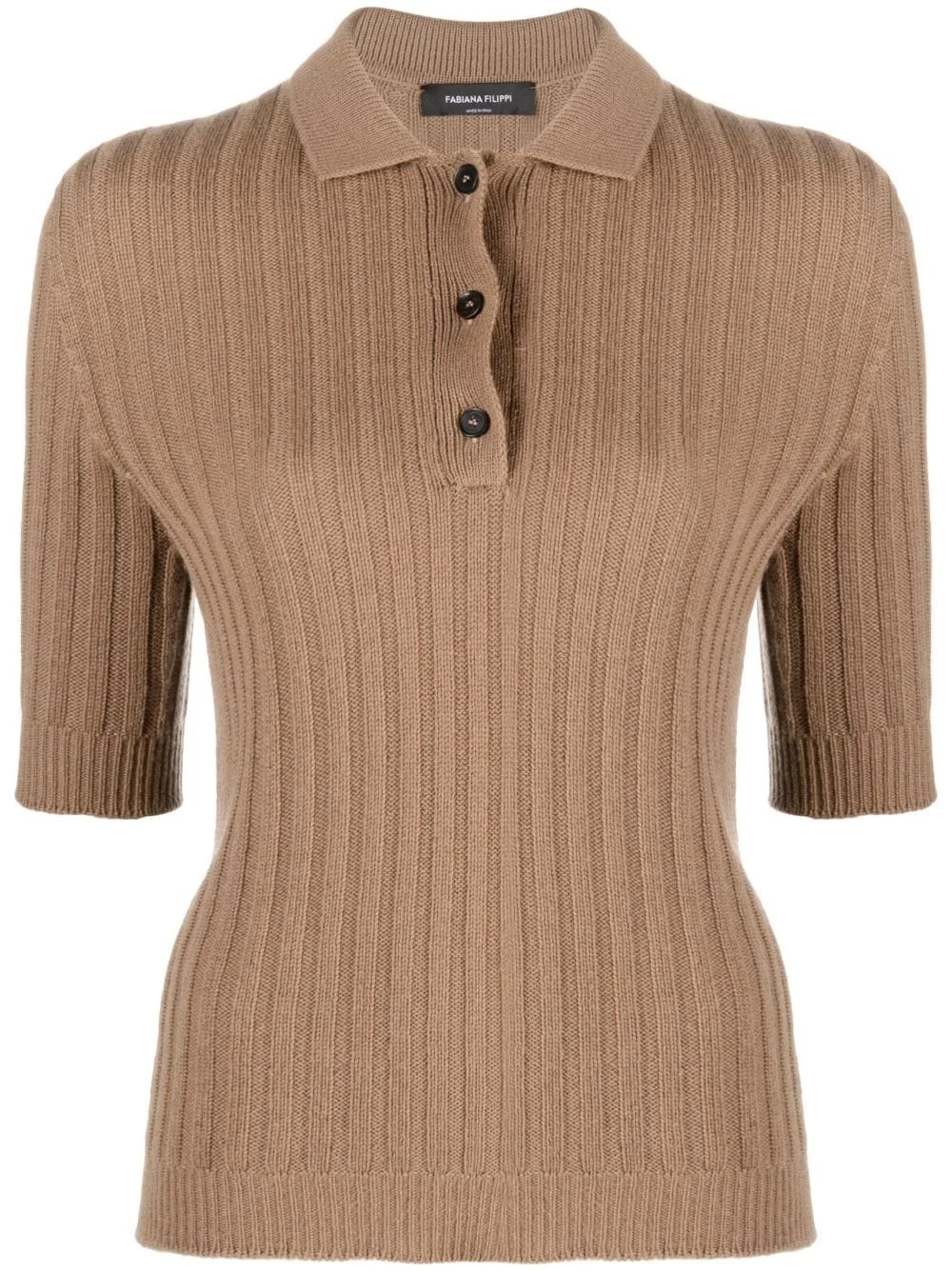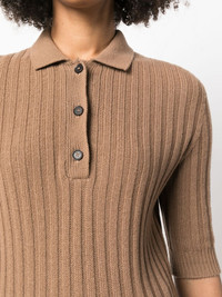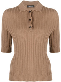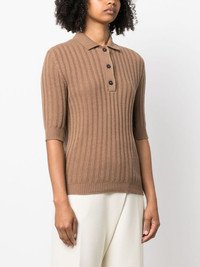 ribbed-knit cashmere polo top Highlights - Light brown - Cashmere - Knitted construction - Wide ribbed - Polo collar - Front button placket - Half-length sleeves - Ribbed cuffs and hem - Straight hem Made in Italy Composition Cashmere 100% Washing instructions Hand Wash