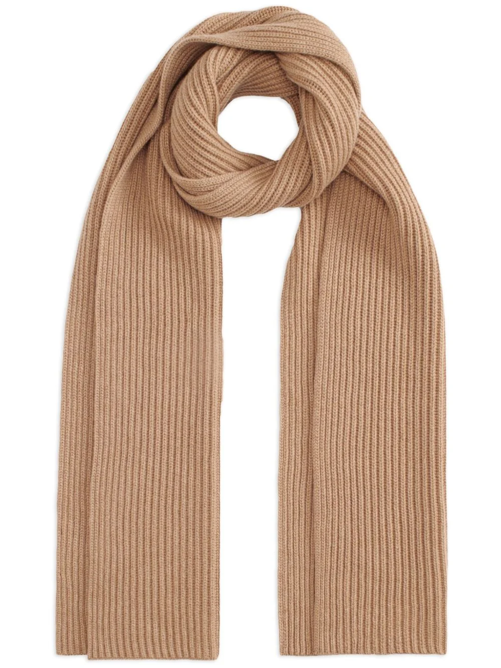 ribbed scarf Highlights - Camel brown - Wool-silk-cashmere blend - Ribbed knit - Finished edge - Rectangle shape Made in Italy Composition Wool 75%, Silk 15%, Cashmere 10% SIZE & FIT Measurement LENGTH 86.61 in(220 cm) WIDTH 13.77 in(35 cm) Washing instructions Read Manufacturer Guidelines