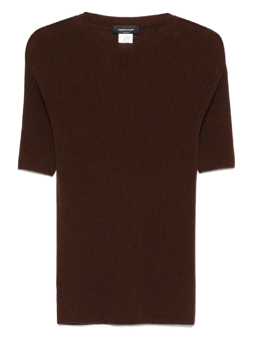 ribbed short-sleeve top Highlights - Brown - Short sleeves - Ribbed knit - Round neck - Straight hem Made in Italy Composition Virgin Wool 75%, Silk 15%, Cashmere 10% Washing instructions Hand Wash