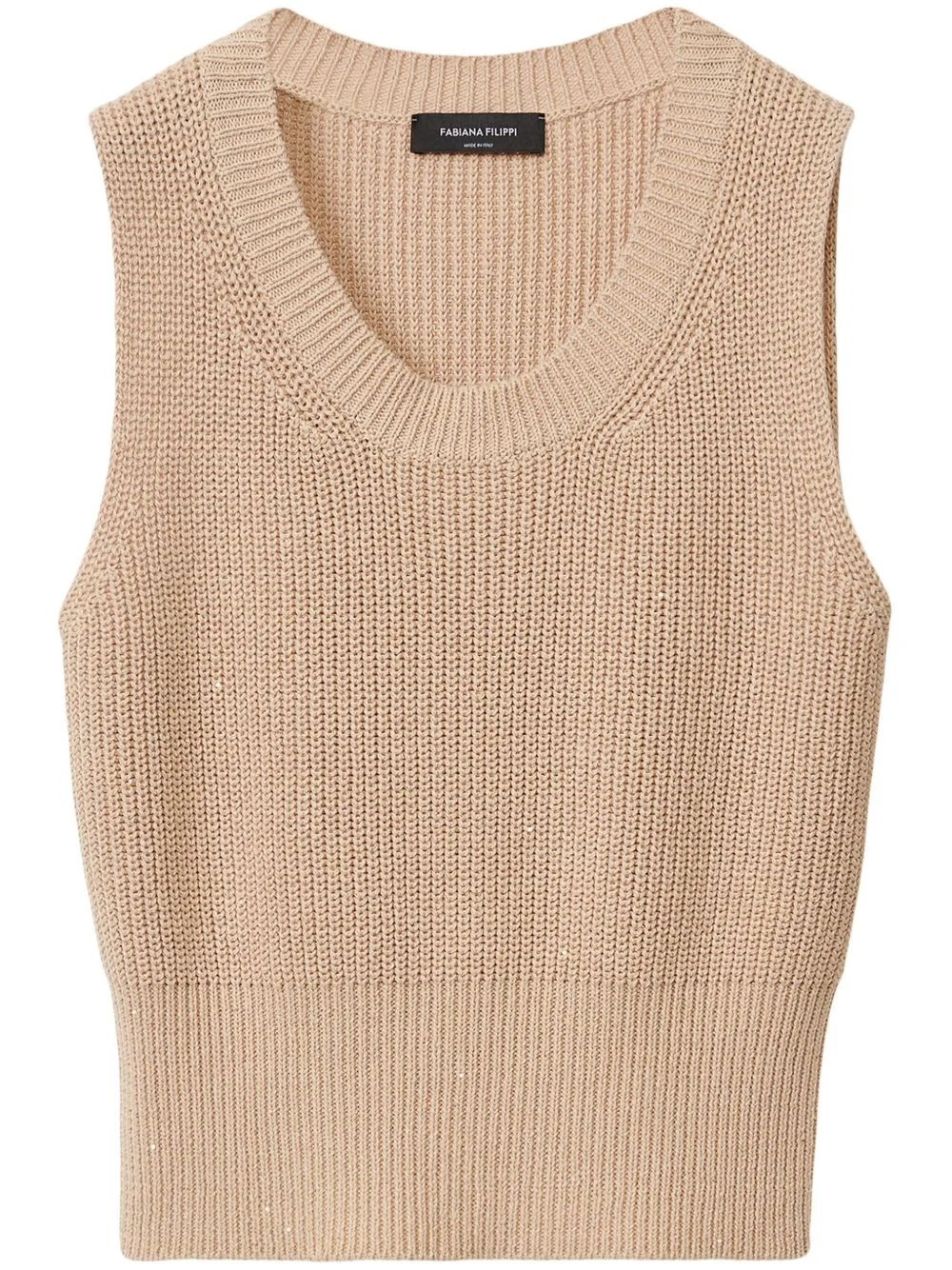 ribbed trim vest Highlights - Beige - U-neck - Sleeveless Made in Italy Composition Cotton 71%, Linen/Flax 28%, Polyester 1% Washing instructions Read Manufacturer Guidelines