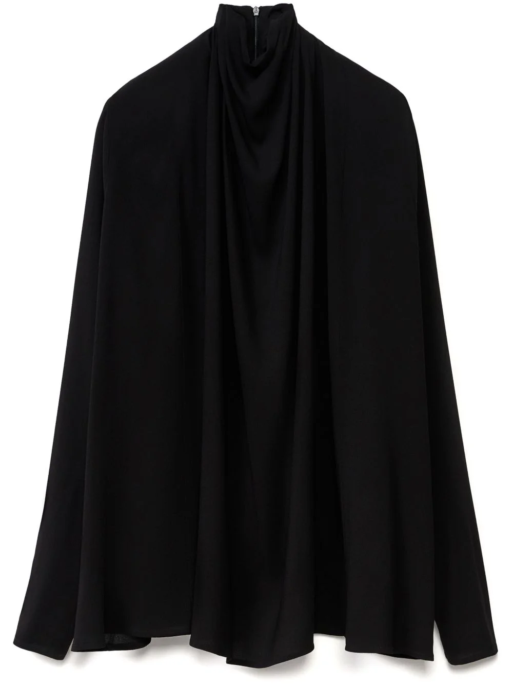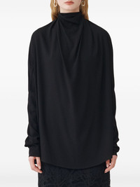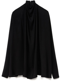 ruched detailing blouse Highlights - Black - Stretch-design - Crepe texture - High neck - Ruched detailing - Long sleeves - Short rear zip fastening Made in Italy Composition Viscose 96%, Elastane 4% Washing instructions Dry Clean Only