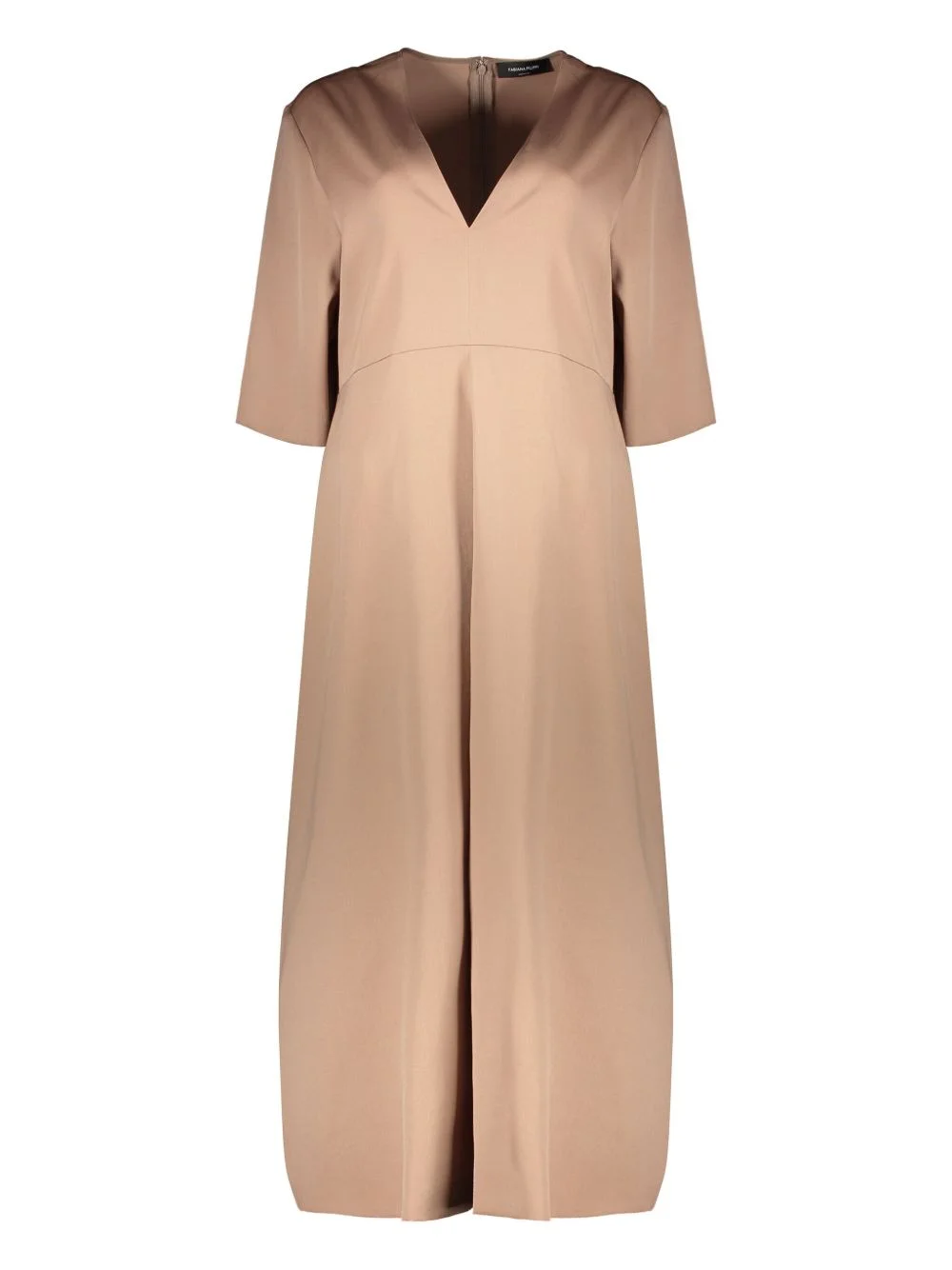 satin midi dress Highlights - Light brown - Concealed rear zip fastening - Front slit - V-neck - Short sleeves Made in Italy Composition Lining: Viscose 57%, Polyester 43% Outer: Virgin Wool 100% Washing instructions Dry Clean Only