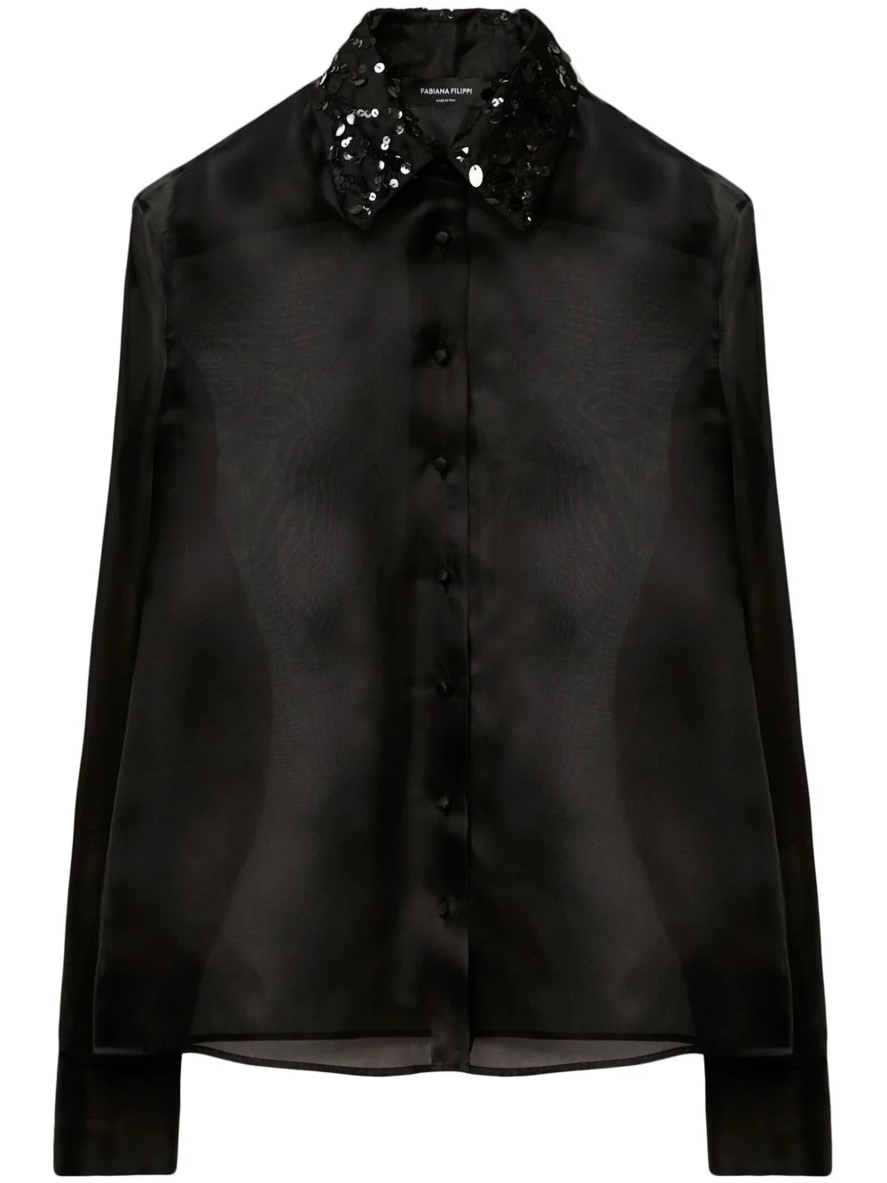 sequined organza shirt Highlights - Black - Front button fastening - Classic collar - Long sleeves - Buttoned cuffs Made In Italy Composition Silk 100% Washing instructions Dry Clean Only