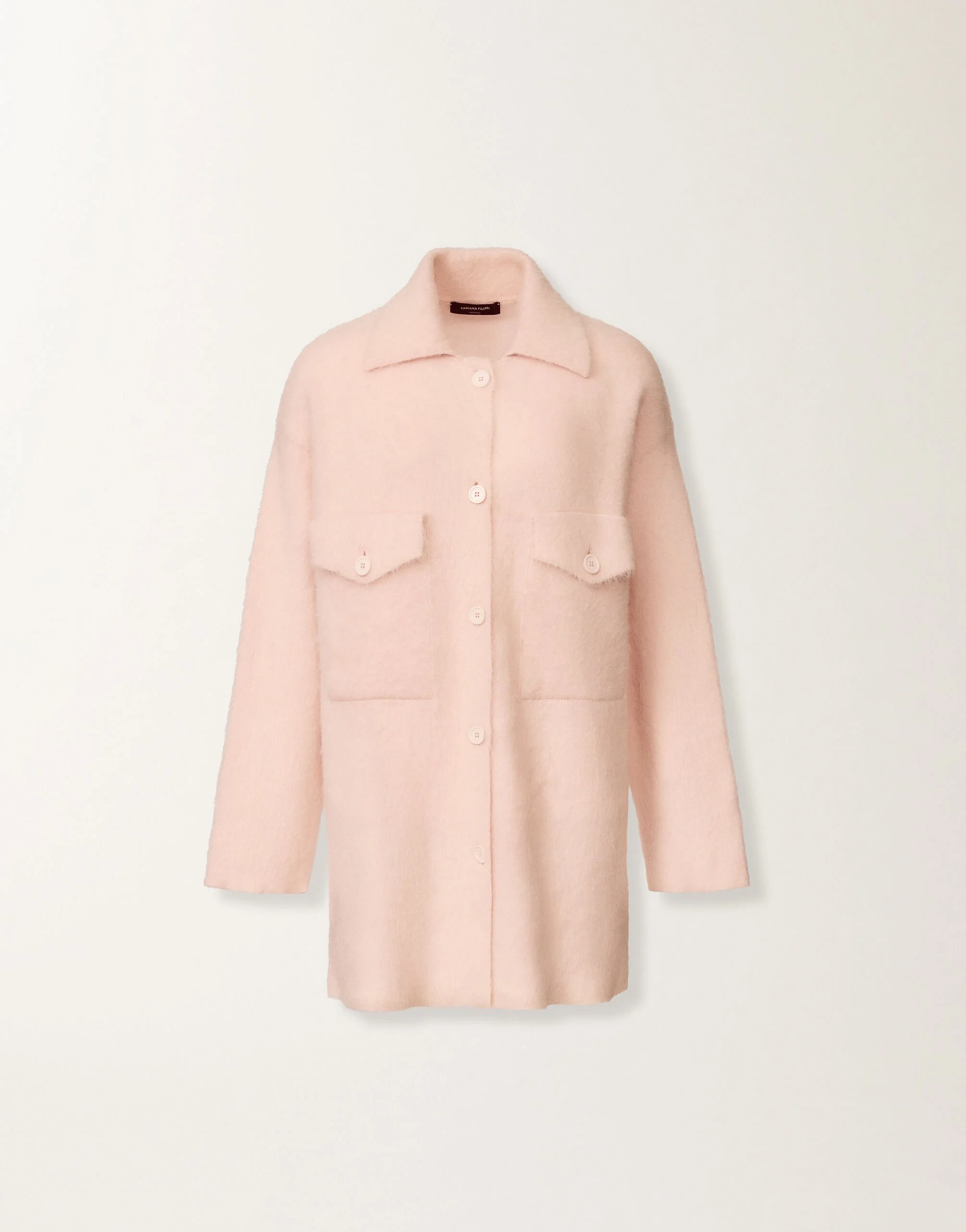 The Autumn-Winter 2025–26 collection explores exceptional materials, like this long shirt in merino wool and mohair. Its brushed finish creates a soft, fuzzy effect. Entirely made in Italy with sustainable processes. The model is 1.8 meters tall and wears size IT 40. Details Brushed merino and mohair Fabric: 49% virgin wool – 30% mohair – 16% polyamide – 5% wool Length: 75 cm (size 40) Made in Italy Model MAD225F543L62000002200