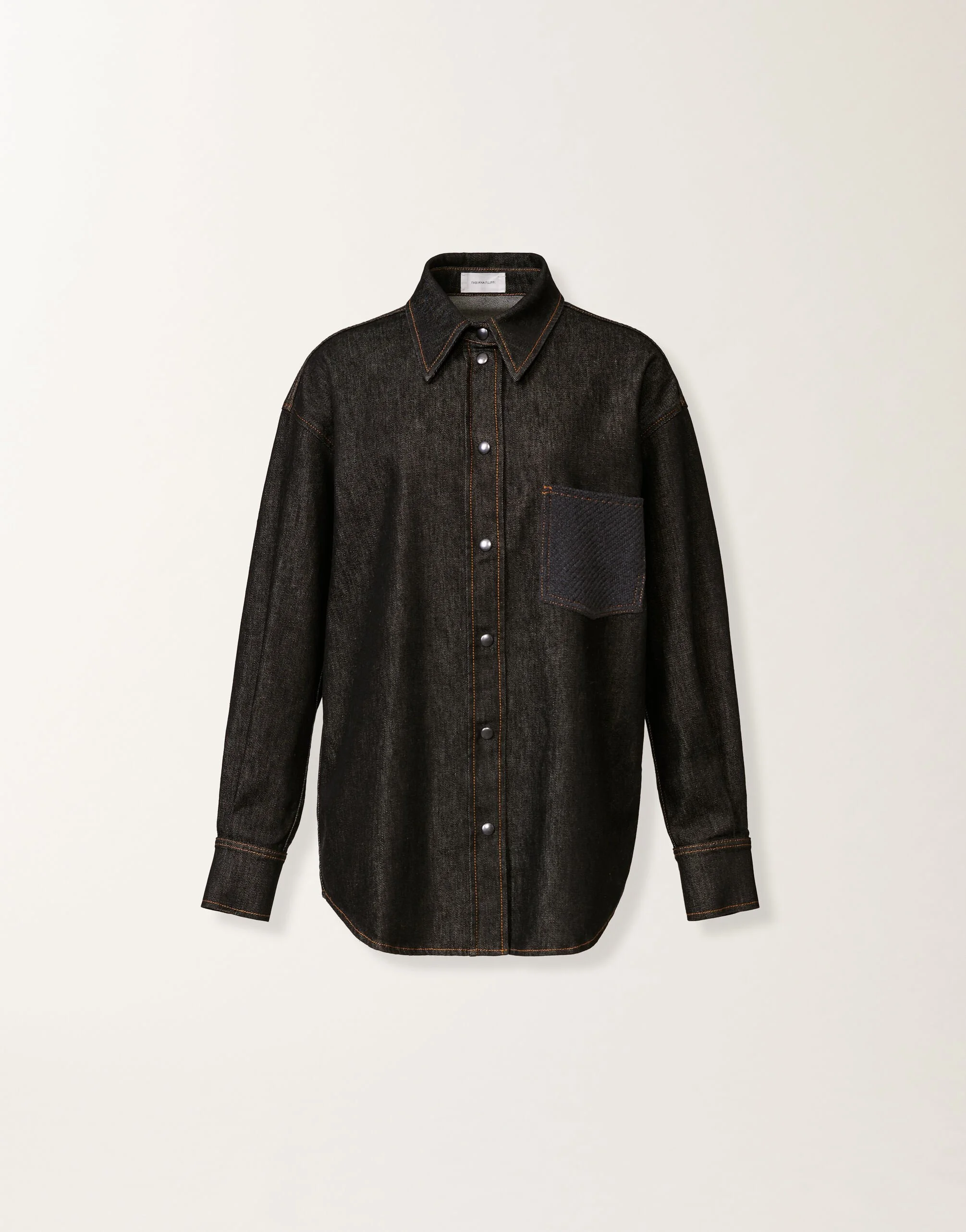 This long stretch denim shirt with an oversized fit combines informal elegance with contemporary silhouettes. The Platinum pocket detail enhances refinement, while the diamond-thread loop adds value. Entirely made in Italy with sustainable processes. The model is 1.8 meters tall and wears size IT 40. Details Denim Diamond thread loop Fabric: 98% cotton – 2% elastane Small pocket in Platinum: 75% wool – 15% silk – 10% cashmere Made in Italy Model CAD225F416L6340000VR18