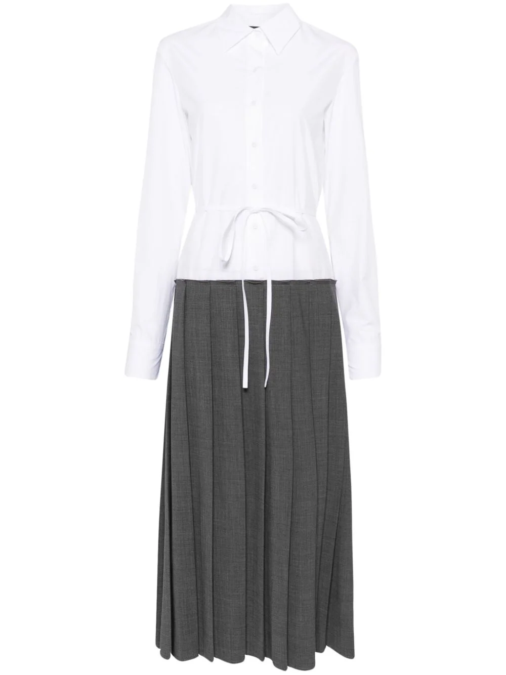 shirt midi dress Highlights - White/grey - Cotton/virgin wool blend - Poplin texture - Interlock twill weave - Front button fastening - Straight-point collar - Long sleeves - Buttoned cuffs - Tied waist - Box-pleat detail - Pleated skirt - Unlined - Straight hem - Mid-length Made in Italy Composition Cotton 100%, Virgin Wool 75%, Polyamide 23%, Elastane 2% Washing instructions Machine Wash