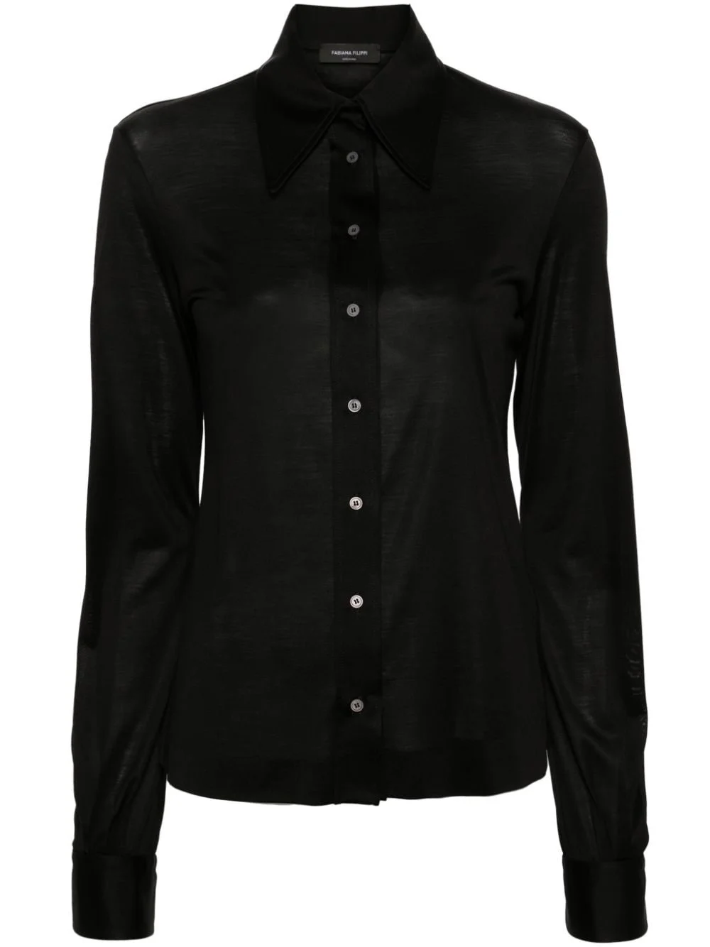 silk jersey shirt Highlights - Black - Silk - Lightweight jersey - Pointed flat collar - Front button fastening - Long sleeves - Buttoned cuffs - Straight hem Made in Italy Composition Silk 100% Washing instructions Hand Wash