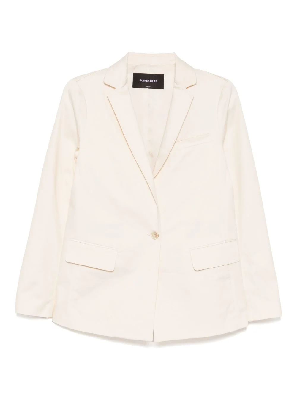 single-breasted blazer Highlights - White - Front button fastening - Two front flap pockets Made in Italy Composition Cotton 97%, Elastane 3% Washing instructions Machine Wash