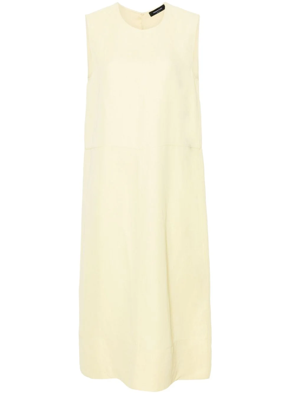 sleeveless shift midi dress Highlights - Light yellow - Seam detailing - Round neck - Rear press-stud fastening - Sleeveless - Shift style - Straight hem - Mid-length Made in Italy Composition Viscose 64%, Linen/Flax 36% Washing instructions Dry Clean Only