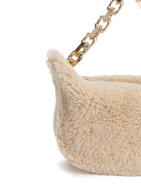 small shearling eyelet bag Highlights - Beige - Shearling - Top zip fastening - Chain-link shoulder strap - Main compartment - Gold-tone hardware Made in Italy Composition Lining: Polyurethane 60%, Polyester 40% Outer: Sheep Skin/Shearling 100% SIZE & FIT Measurement DEPTH 5.51 in(14 cm) HEIGHT 5.9 in(15 cm) WIDTH 10.62 in(27 cm)