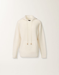 Made in Platinum, Fabiana Filippi’s exclusive yarn blending wool, cashmere, and silk, this hoodie features a drawstring and is embellished with a pepita detail. Entirely made in Italy through sustainable processes. The model is 1.79 meters tall and wears size IT 40. Details Platinum yarn Pepita Hood Drawstring Fabric: 75% wool – 15% silk – 10% cashmere Made in Italy Model MAD225F464N128000025
