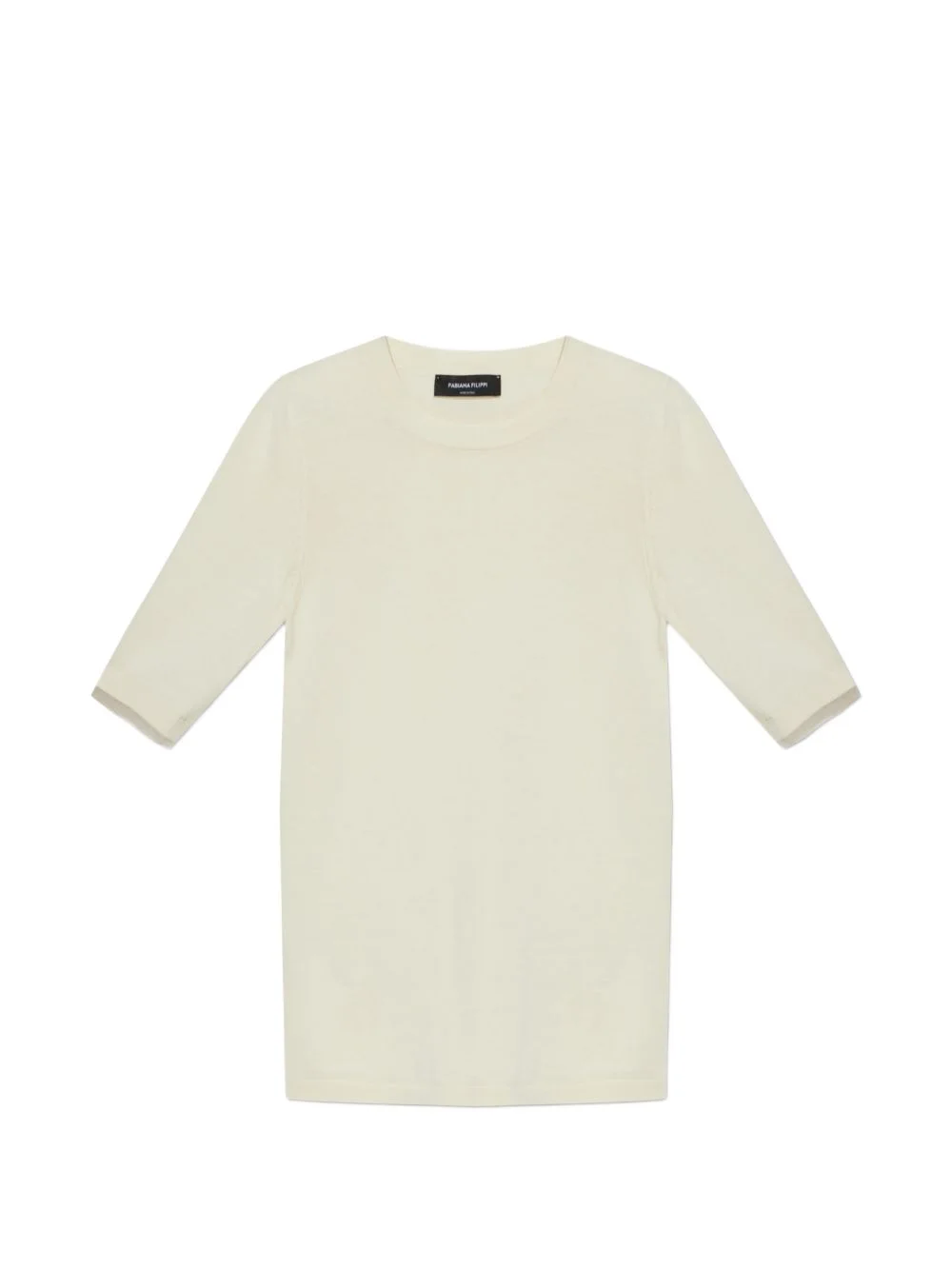 tulle-trim knitted T-shirt Highlights - Off-white - Round neck - Short sleeves - Tulle trim - Knitted construction - Ribbed trims Made in Italy Composition Cotton 100% Washing instructions Read Manufacturer Guidelines