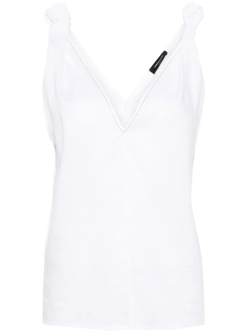 V-neck linen blouse Highlights - White - Linen/flax - Bead embellishment - Knot detailing - V-neck - Sleeveless - V-back - Straight hem Made in Italy Composition Linen/Flax 100% Washing instructions Machine Wash
