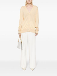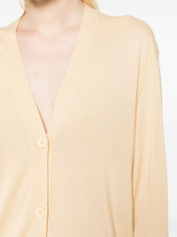 V-neck long-sleeve cardigan Highlights - Pastel yellow - Cashmere-silk blend - V-neck - Front button fastening - Long sleeves - Ribbed cuffs and hem - Straight hem Made in Italy Composition Cashmere 70%, Silk 30% Washing instructions Hand Wash