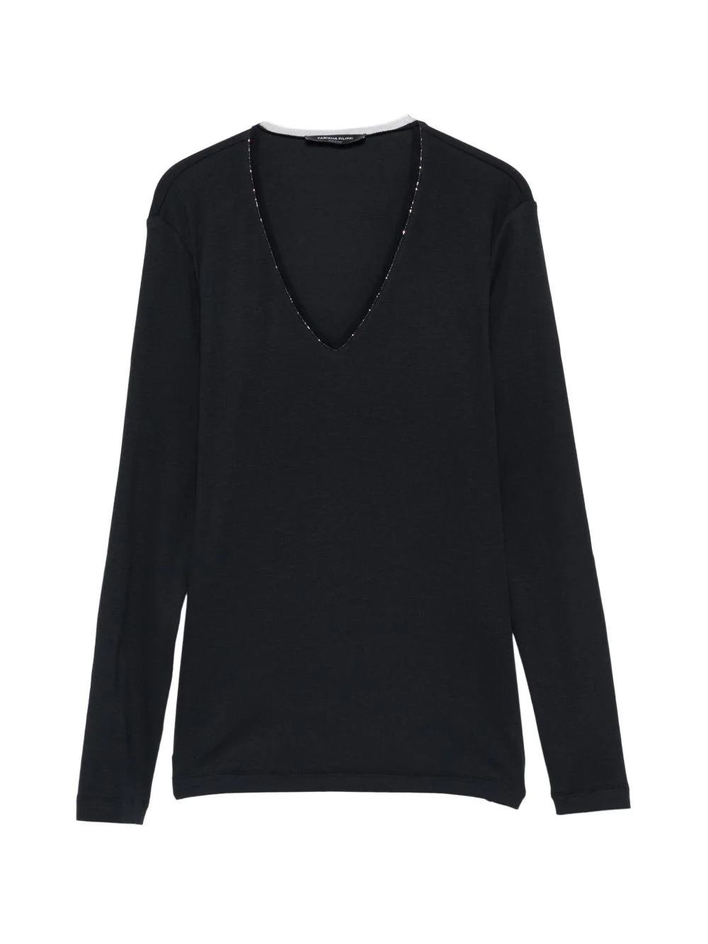 V-neck T-shirt Highlights - Blue - V-neck - Long sleeves - Plain knit Made in Italy Composition Cotton 94%, Elastane 6% Washing instructions Machine Wash