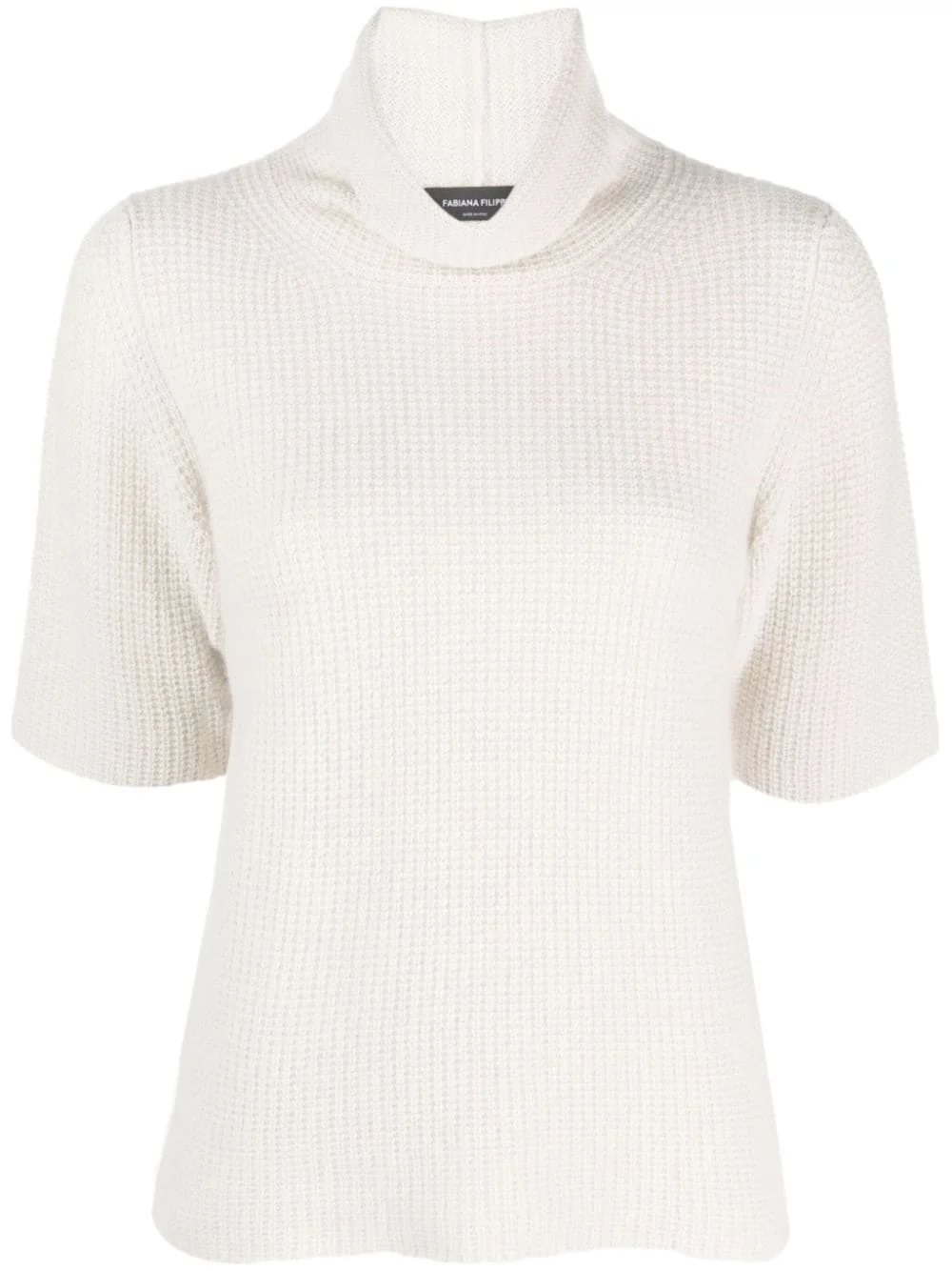 waffle-knit roll-neck T-shirt Highlights - Off-white - Knitted construction - Waffle knit - Roll neck - Short sleeves - Straight hem Made in Italy Composition Virgin Wool 47%, Mohair 13%, Alpaca Wool 13%, Polyamide 12%, Silk 9%, Cashmere 6% Washing instructions Hand Wash