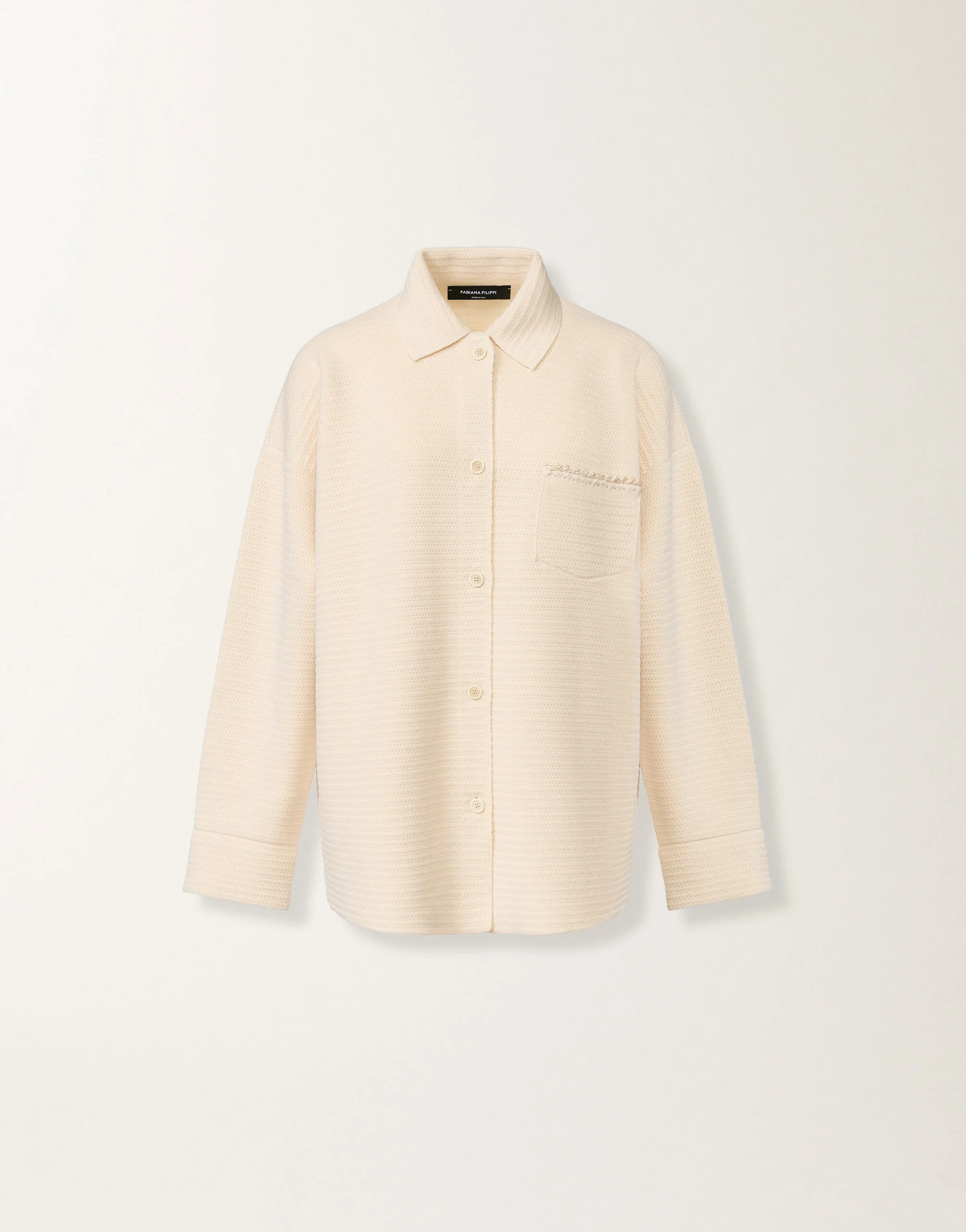 Boyfriend shirt in wool and cotton, a luxurious blend that combines comfort and sophistication. The unique basket weave enhances its texture, imparting character and modernity. Made entirely in Italy through sustainable processes. The model is 1,8 m tall and wears size IT 40. Details Wool and cotton Basket weave Fabric: 53% virgin wool – 47% cotton Length: 67.5 cm (size 40) Made in Italy Model MAD266F043L76700000145