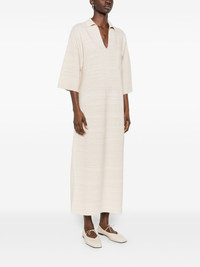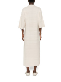 V-neck pocket maxi dress Highlights - Beige - Chest pocket - Short sleeves - V-neck - Tonal stripes - Collar Made in Italy Composition Virgin Wool 34%, Cotton 30%, Viscose 28%, Polyester 8% Washing instructions Dry Clean Only